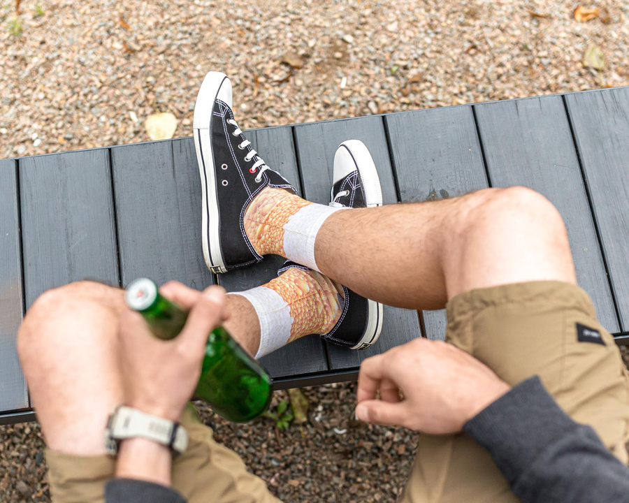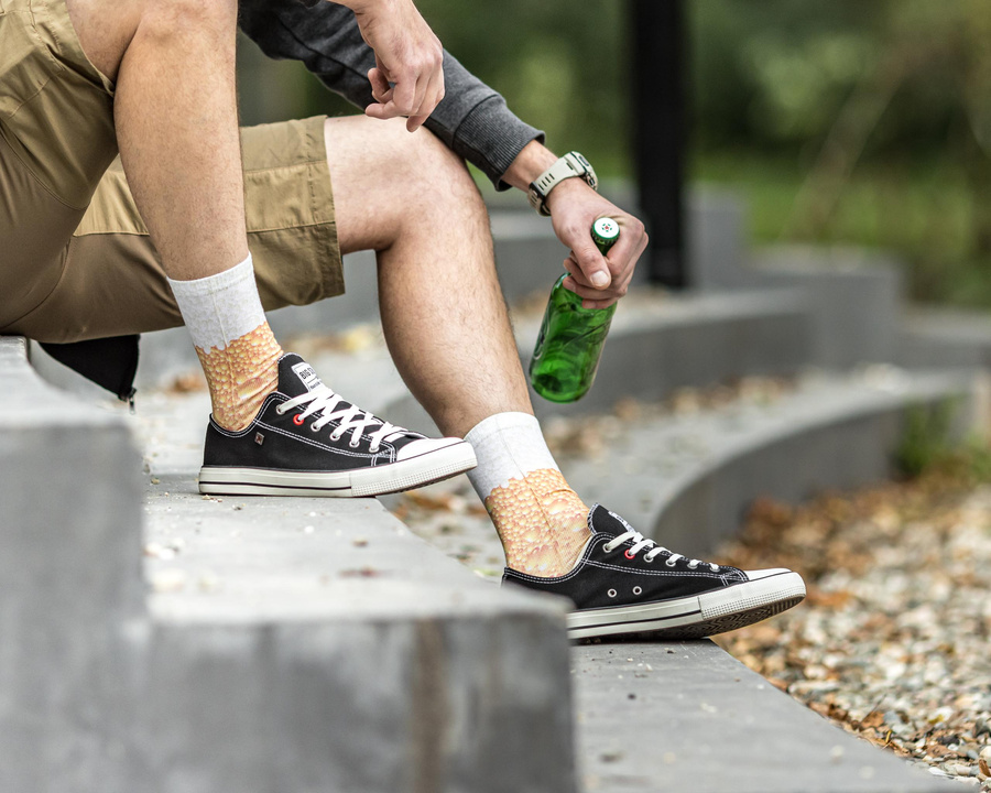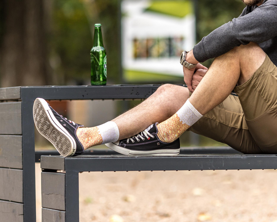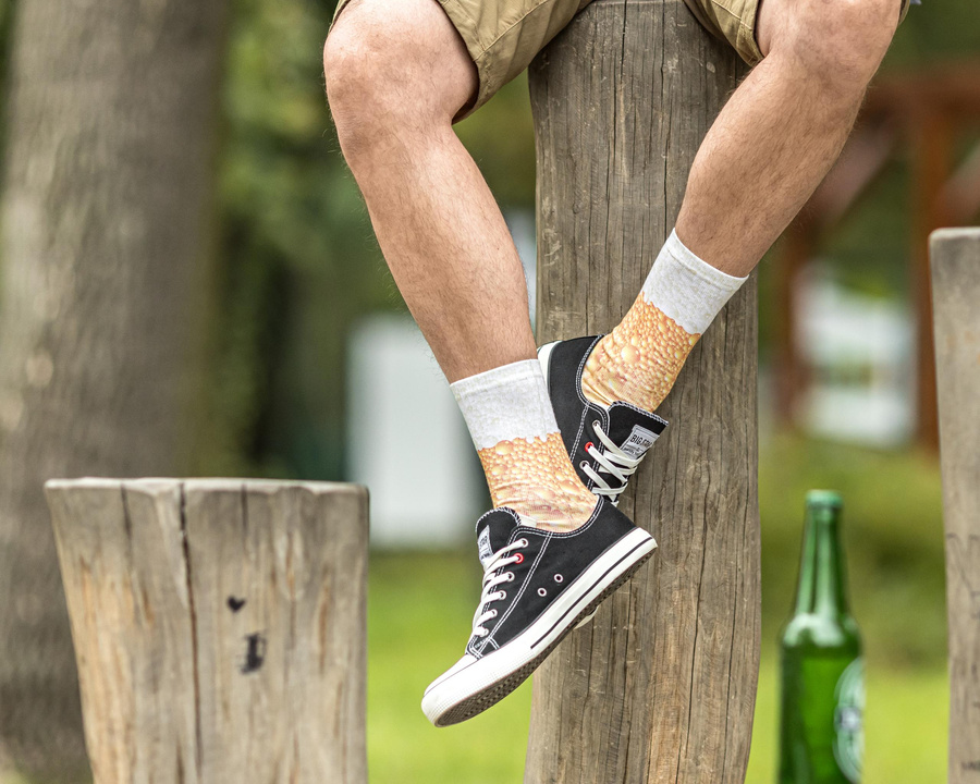 • Wyobraź sobie skarpetki, które są tak rozkosznie wyjątkowe, że czujesz się, jakbyś miał małe piwne bąbelki na swoich stopach. To jakby twoje stopy były radosnymi małymi kufelkami z pianką na górze!