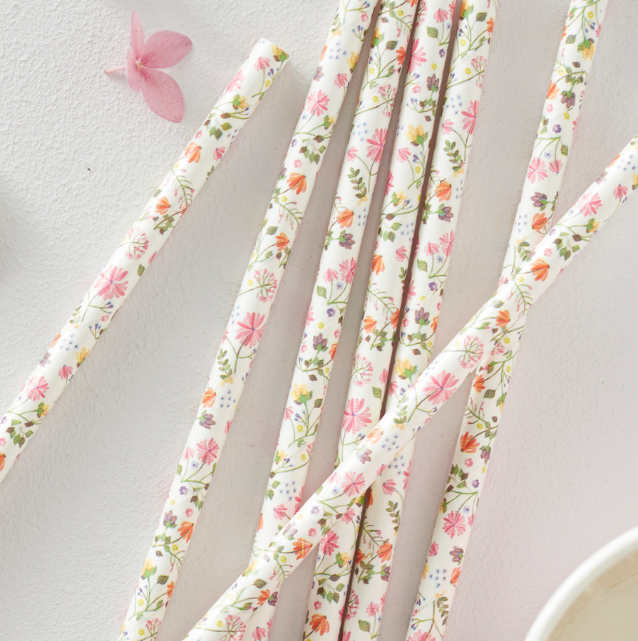Śliczne, papierowe słomki z motywem kwiatowym.