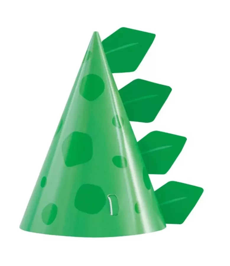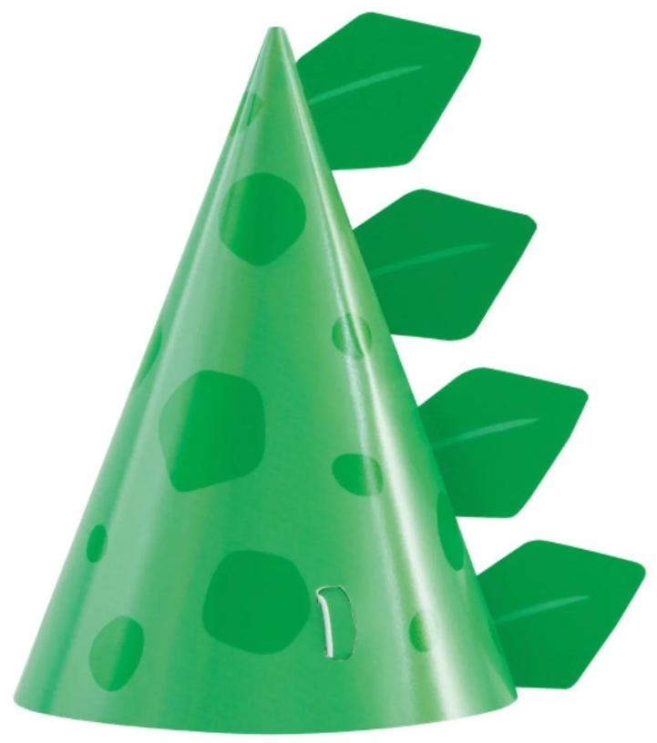 • Zestaw czapeczek papierowych z motywem dinozaurów. Opakowanie zawiera 8 sztuk.