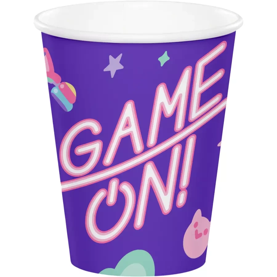 Kubeczki papierowe Gaming Party fioletowe 256 ml 8 szt.