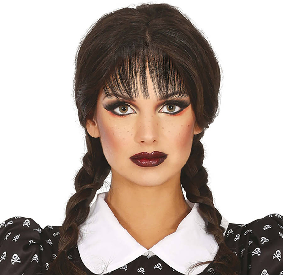 Peruka czarna z dwoma warkoczami i grzywką Wednesday