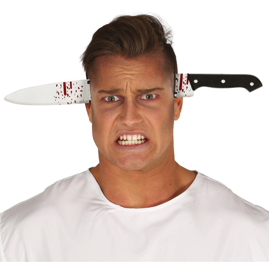 - Opaska z nożem przebijającym głowę - zabawny dodatek na Halloween, z pewnością zaskoczysz znajomych! Całość wykonana z tworzywa sztucznego. Cena za sztukę.
