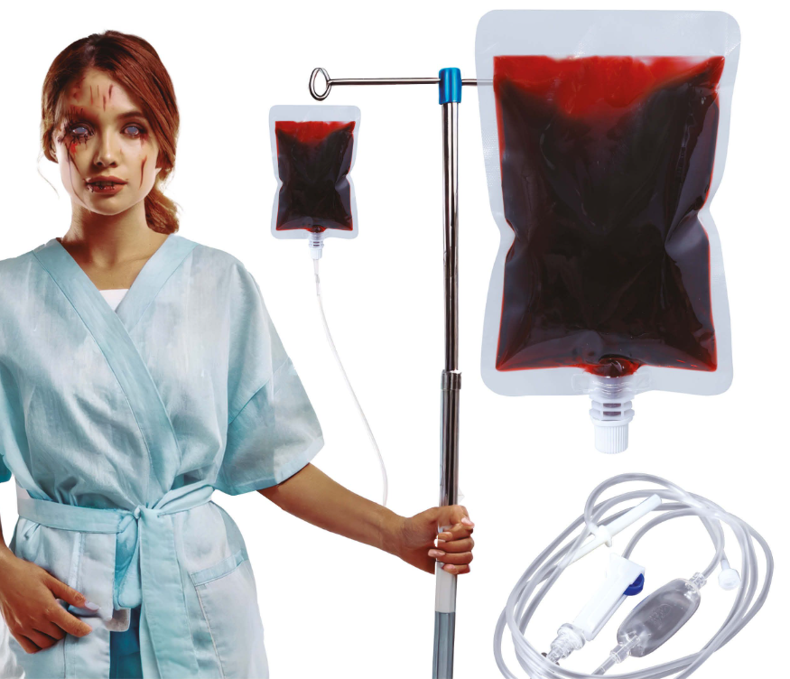 Torba medyczna ze sztuczną krwią to nietuzinkowy gadżet halloweenowy.
