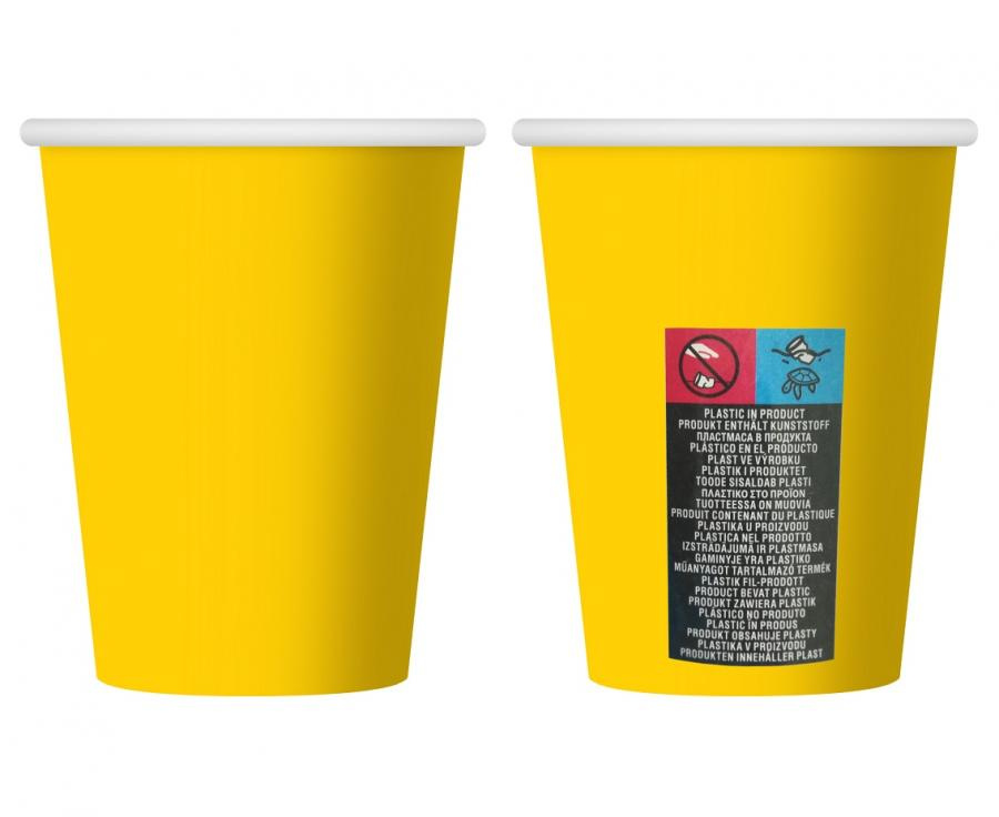 Kubeczki papierowe jednokolorowe żółte 270ml 6 szt.