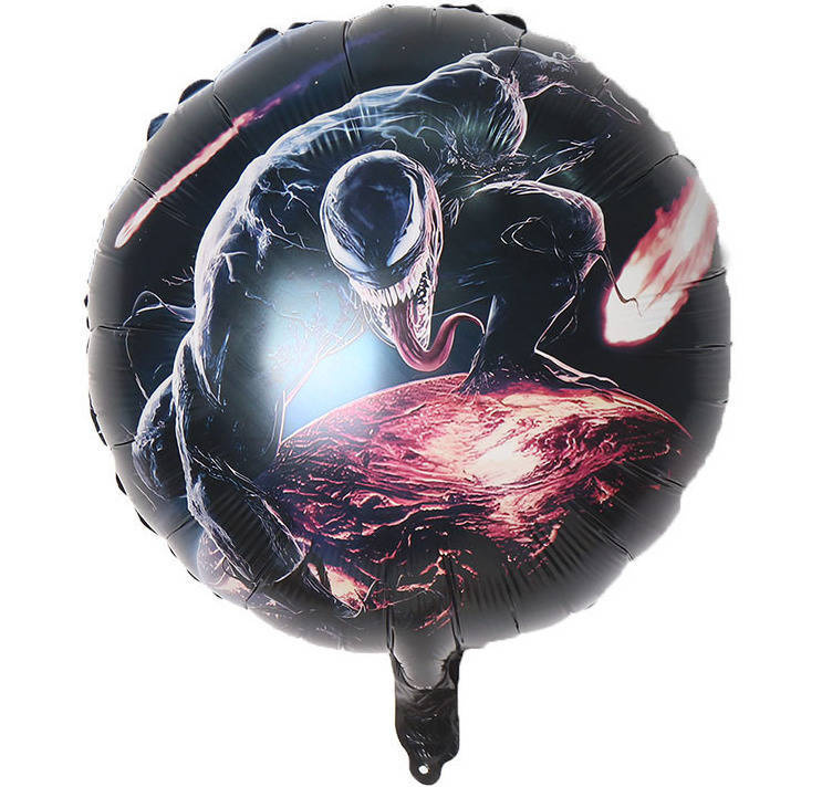 - Balon Foliowy Venom 18 cali - Realistyczny antybohater z komiksów i filmów. Trwała folia zapewnia długotrwałą dekorację. Łatwe napełnianie helem lub powietrzem. Doskonały na urodziny, imprezy tematyczne. Rozmiar: 45 cm. Cena za sztukę.