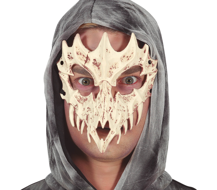 Maska została starannie zaprojektowana, aby oddać wszystkie charakterystyczne detale czaszki. Jej wyrazista anatomia i szczegółowe zdobienia nadają jej przerażający wygląd. Maskę wykonano z wytrzymałego i lekkiego materiału, co zapewnia komfort podczas noszenia. Elastyczne paski trzymają ją pewnie na twarzy, nie przeszkadzając w oddychaniu ani widzeniu.