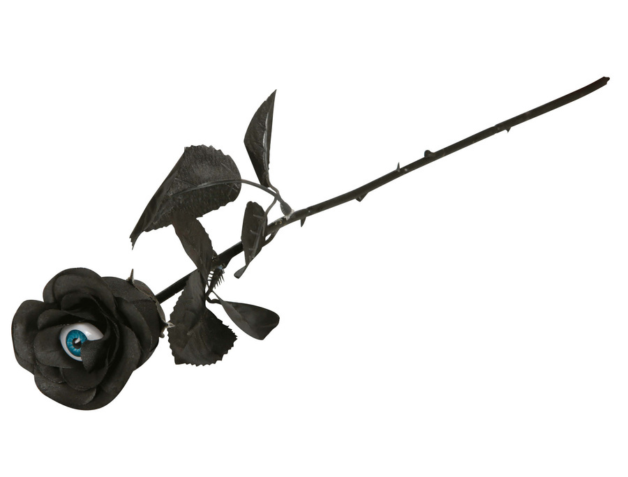 - Dekoracyjna, czarna róża z okiem - idealny dodatek na Halloween lub mroczne sesje zdjęciowe. Długość ok. 42 cm. Kolor czarny. Cena za sztukę.