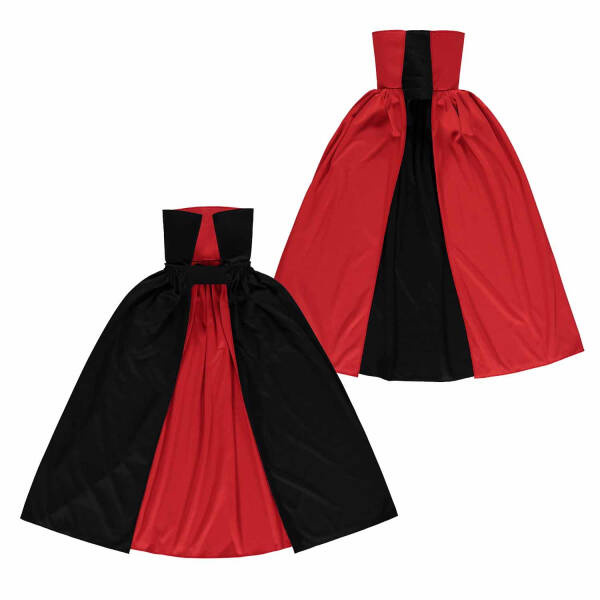 Ta peleryna ma dwie strony: jedna strona to klasyczny czerwony kolor z czarnym kołnierzem, który odzwierciedla tradycyjny wygląd Draculi, podczas gdy druga strona to czarny kolor z czerwonym kołnierzem, co daje możliwość zmiany stylu w ciągu chwili. Duży kołnierz peleryny nadaje jej autentyczny wygląd wampira i tworzy tajemniczą atmosferę.