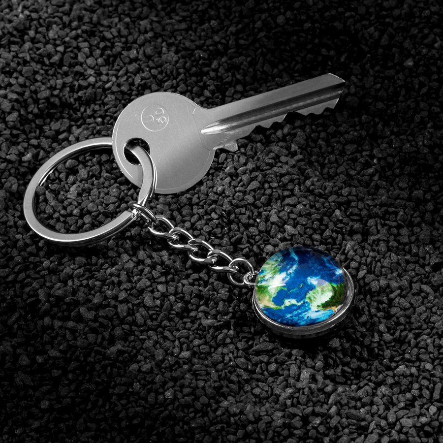 • Szklany brelok na klucze z odwzorowaniem kuli ziemskiej to fascynujący i symboliczny gadżet, który łączy w sobie funkcjonalność i estetykę.