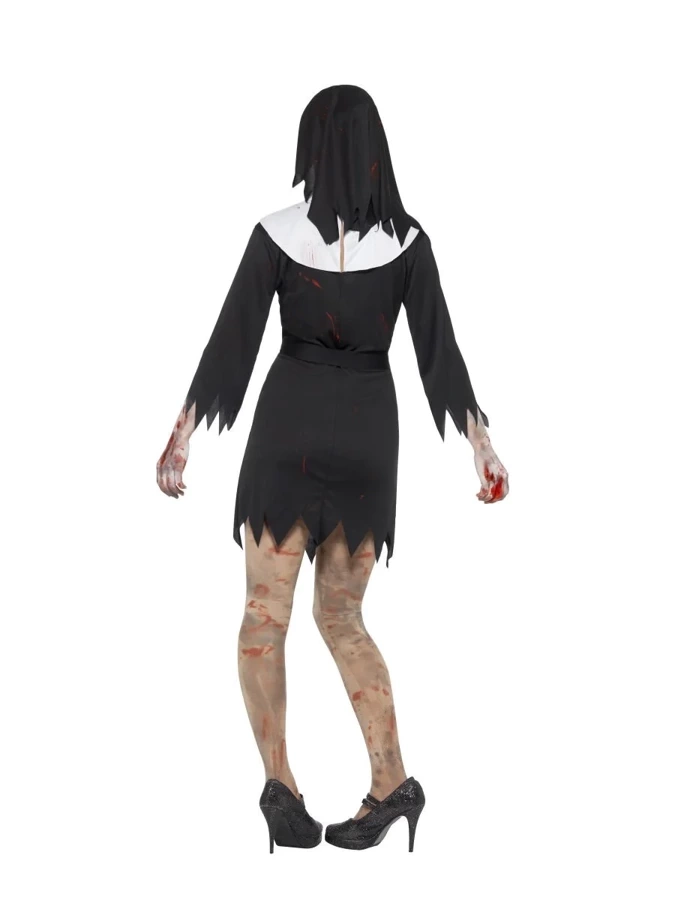 - Kostium Zakonnicy Zombie. W zestawie znajduje się sukienka, nakrycie głowy, pasek i naszyjnik z krzyżem. Cena za zestaw.