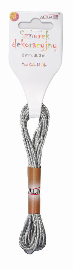 • Sznurek dekoracyjny do wszelkiego rodzaju prac plastycznych i kreatywnych. Długość ok. 3 metrów. Kolor srebrny. Cena za sztukę.