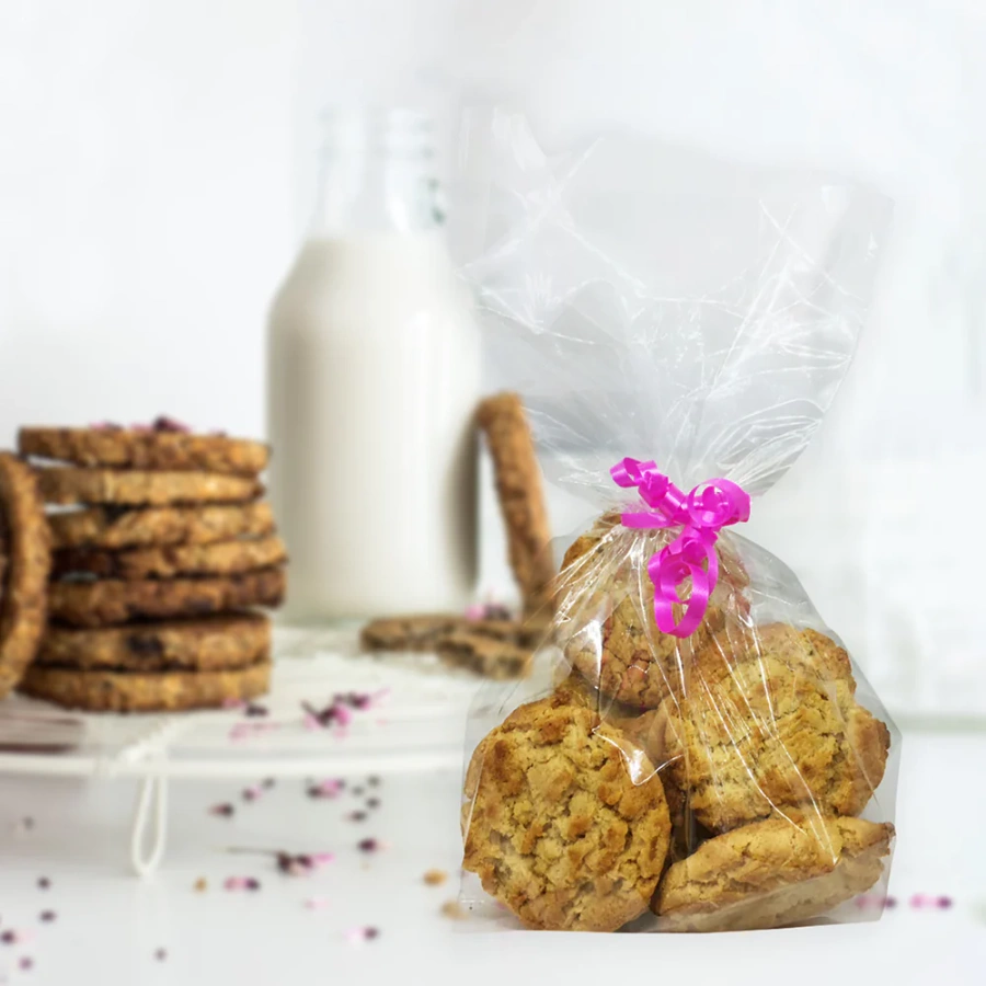 - Praktyczne woreczki celofanowe na słodkości. Zestaw 20 sztuk o wymiarach 12,5 x 28,5 cm z metalicznym zapięciem twist tie. Idealnie nadają się do pakowania prezentów i przekąsek.