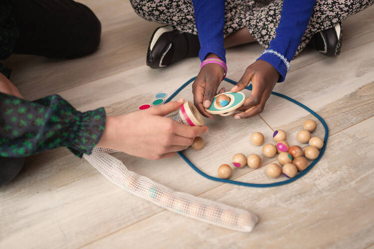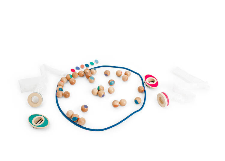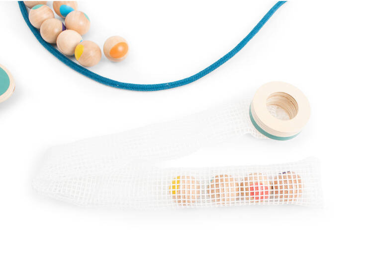 Do nakładania kulek służą specjalne drewniane chwytaki. Tutaj najważniejsza jest współpraca zespołu - jeden gracz używa chwytaka, drugi gąsiennicy.