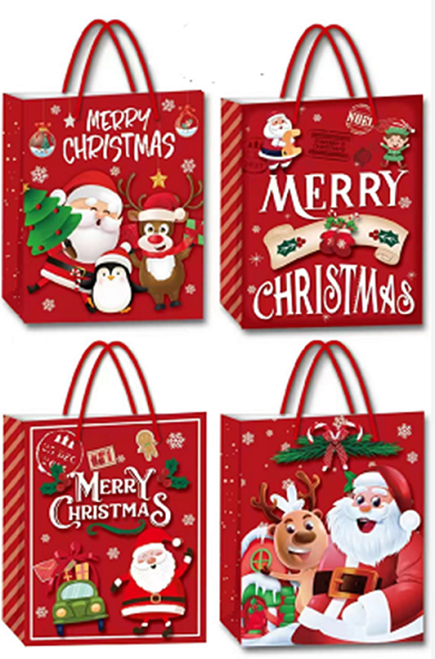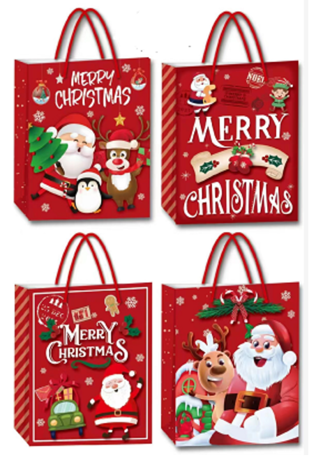 Odkryj magię świąt za sprawą naszej wyjątkowej torebki prezentowej! Ten przepiękny dodatek do Twoich prezentów wyróżnia się aż czterema uroczymi wzorami, przedstawiającymi Mikołaje, elfy, renifery i inne motywy z bajkowego świata.
