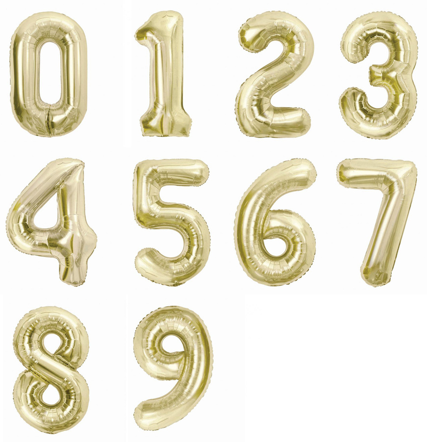 • Balon foliowy CYFRA w kolorze szampańskim, wysokość ok. 85 cm (ok. 39-40").
