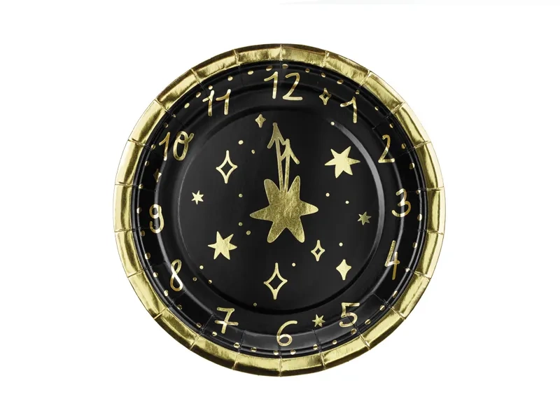 Talerzyki papierowe Zegar Sylwester 18 cm 6 szt.