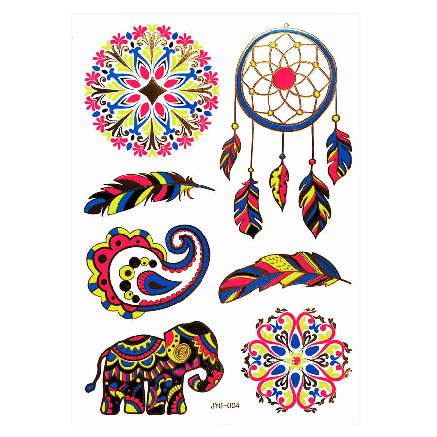 • Zestaw tatuaży zmywalnych, świecących pod wpływem światła UV.