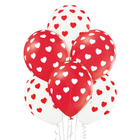 - Balon lateksowy z nadrukiem w serduszka. Dostępne dwa kolory biały i czerwony wysyłany losowo.