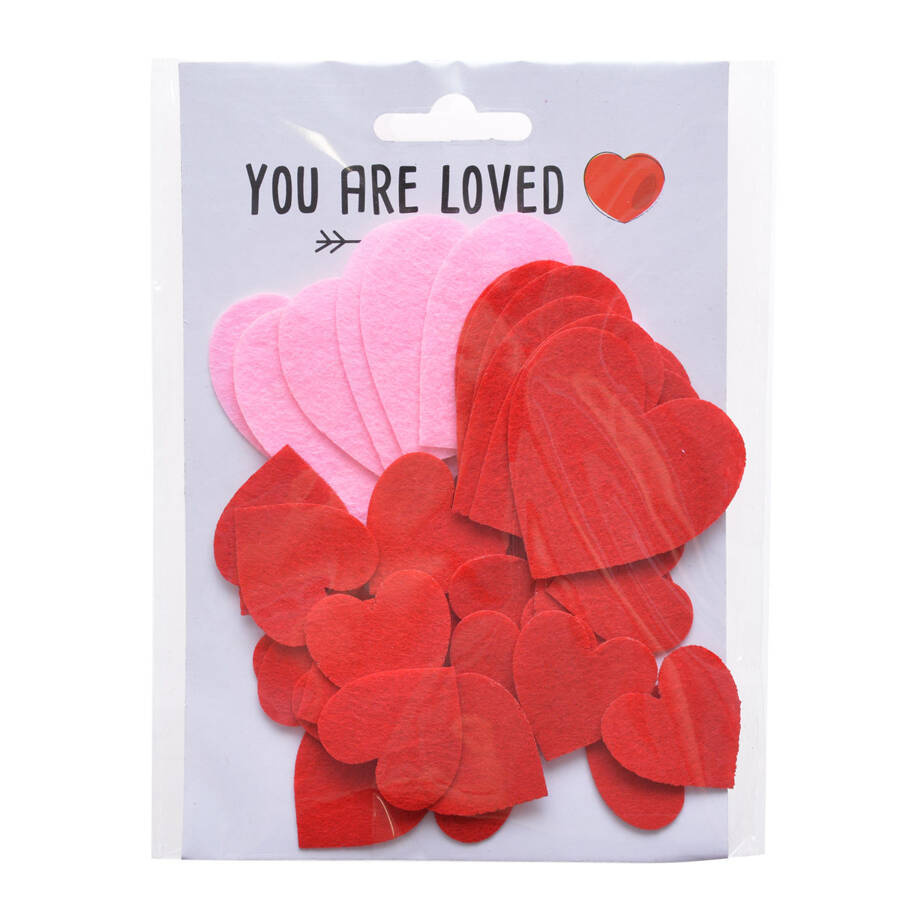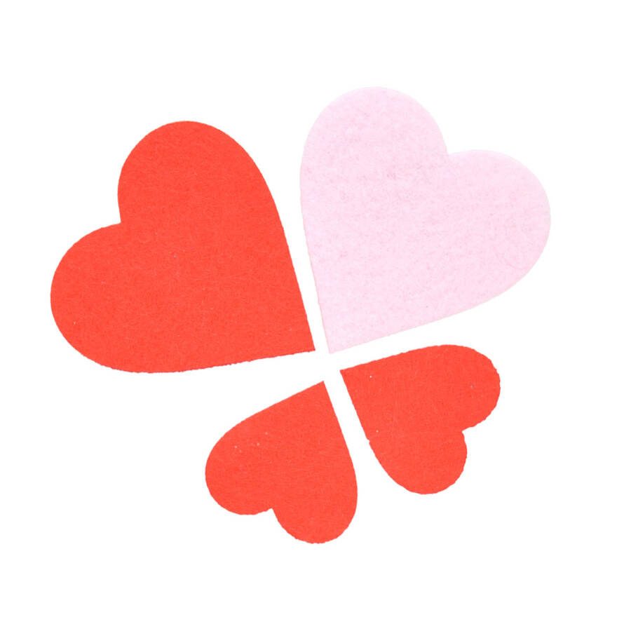 • Zestaw filcowych serduszek w różnych rozmiarach, w dwóch kolorach: czerwonym i różowym.