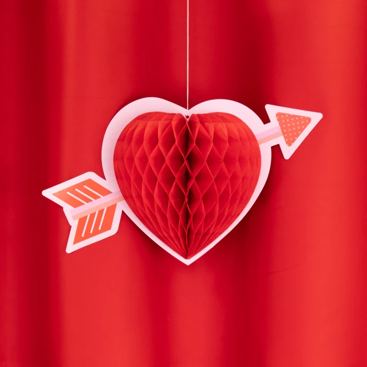 Dekoracja Serce ze strzałą 3D honeycomb 35x21cm