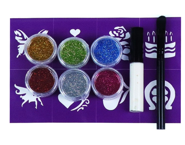 ZESTAW do tatuaży brokatowych (klej, szablony, brokat) Aliga
