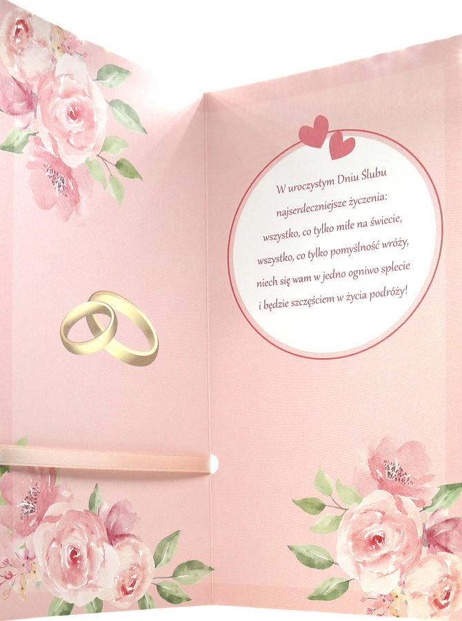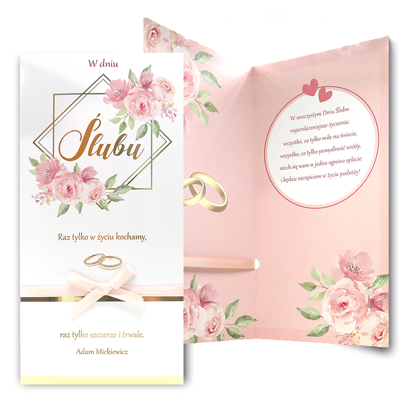 Kartka okolicznościowa W DNIU ŚLUBU kwiaty kokardka