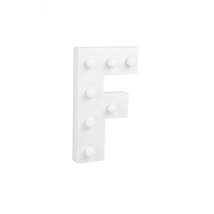 Świecąca Litera LED "F" Light Letter, drewniana biała