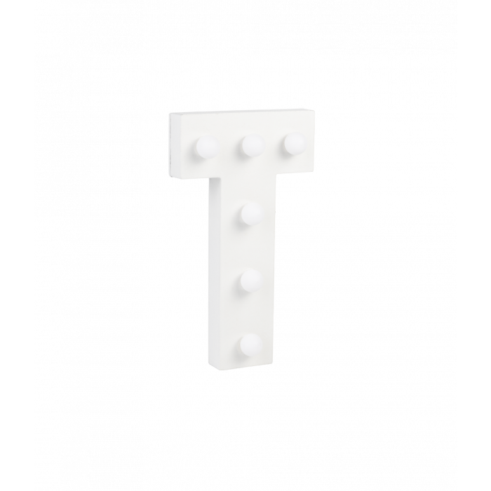 Świecąca Litera LED "T" Light Letter, drewniana biała