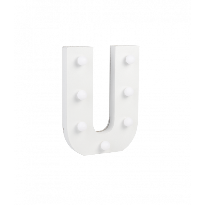 Świecąca Litera LED "U" Light Letter, drewniana biała