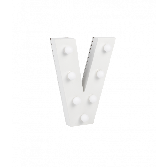 Świecąca Litera LED "V" Light Letter, drewniana biała