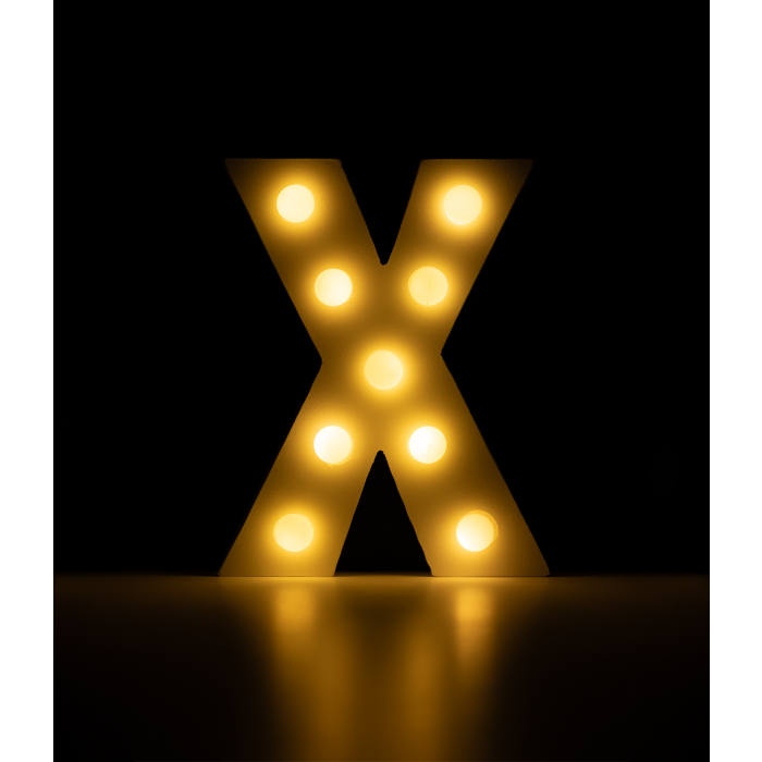 Świecąca Litera LED "X" Light Letter, drewniana biała