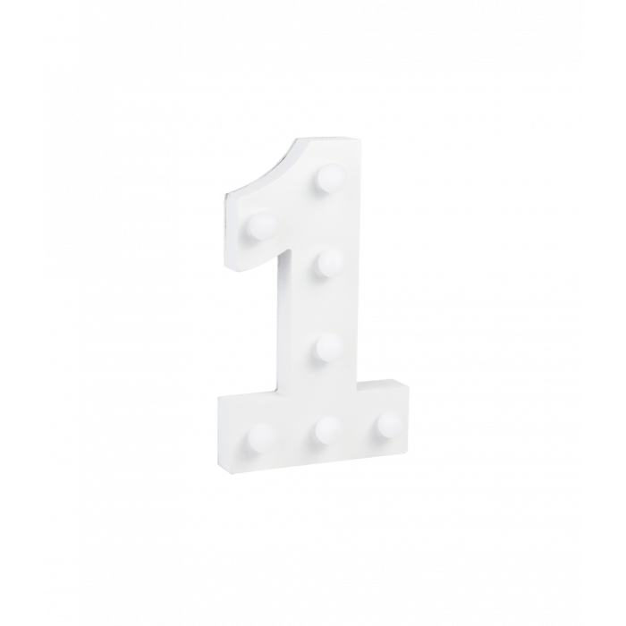 Świecąca Cyfra LED "1" Light Letter, drewniana biała