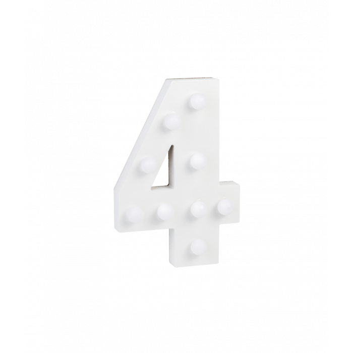 Świecąca Cyfra LED "4" Light Letter, drewniana biała