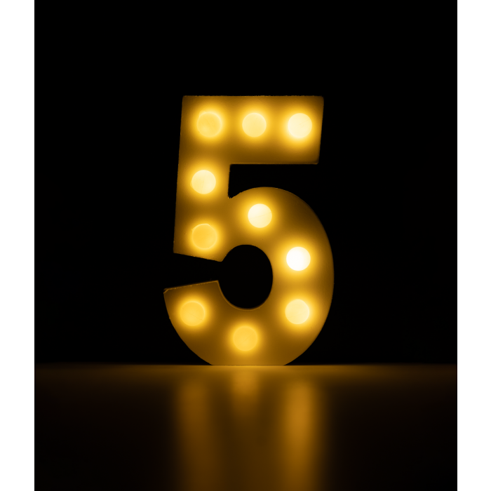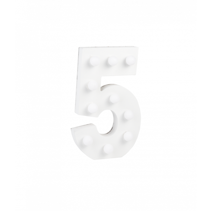 Świecąca Cyfra LED "5" Light Letter, drewniana biała