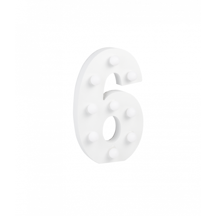 Świecąca Cyfra LED "6" Light Letter, drewniana biała