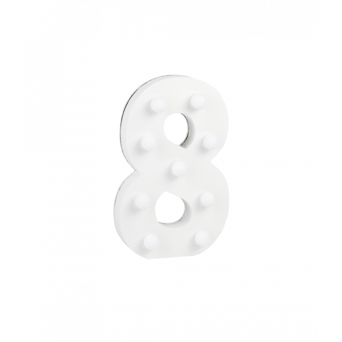 Świecąca Cyfra LED "8" Light Letter, drewniana biała