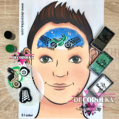 Wielorazowy szablon przeznaczony do stosowania z farbami do twarzy i ciała czy brokatem w celu uzyskania efektownego wykończenia i zaznaczania ciekawych detali na ciele.