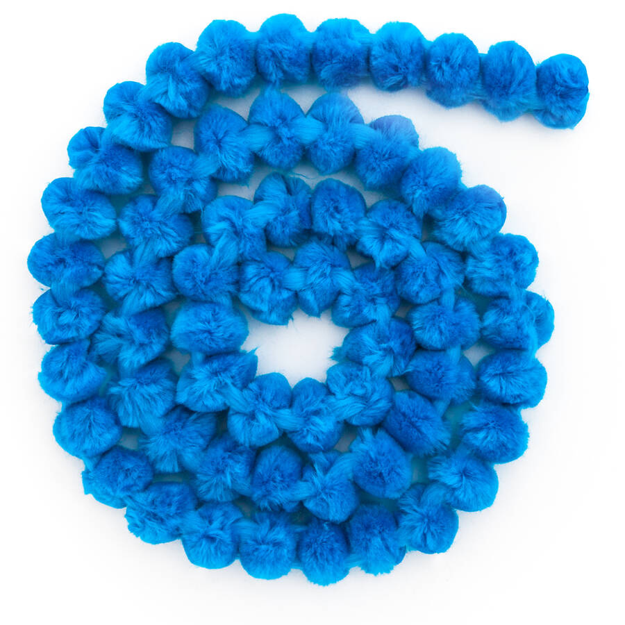Mini Pompony w Kolorze Niebieskim: Mini pompony wykonane są z miękkiego i puszystego materiału w pięknym odcieniu niebieskiego.