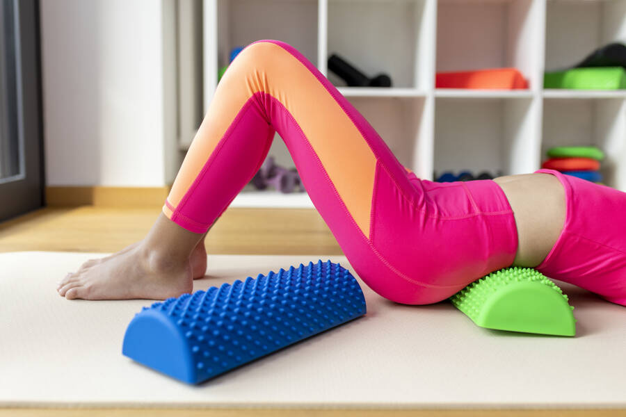 • Masaż całego ciała: Dzięki ergonomicznemu kształtowi, półwałek jest świetnym narzędziem do samodzielnego masażu różnych obszarów ciała.