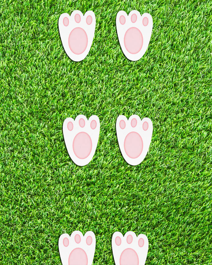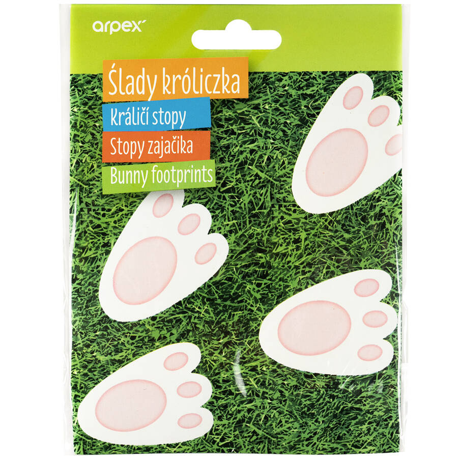 - Zestaw 20 sztuk łapek przypominających ślady króliczka to oryginalna dekoracja, dzięki której stworzysz ścieżkę prowadząca do wielkanocnych prezentów.