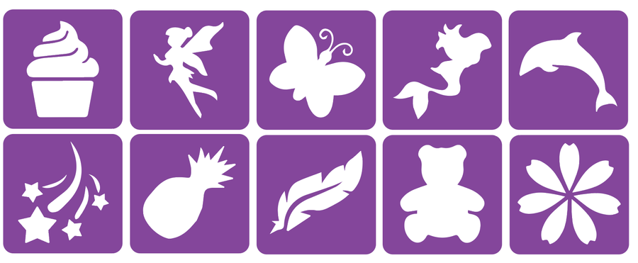 ZESTAW do tatuaży brokatowych (szablony, klej, odtłuszczacz, pędzelki)