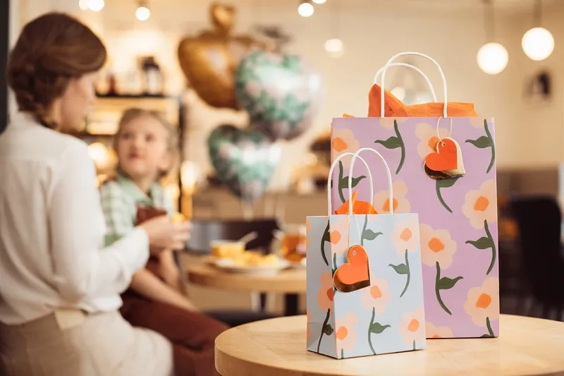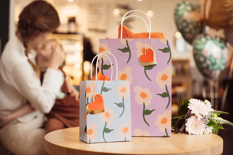 - Wyjątkowa torebka na prezenty w delikatne wzory kwiatów.