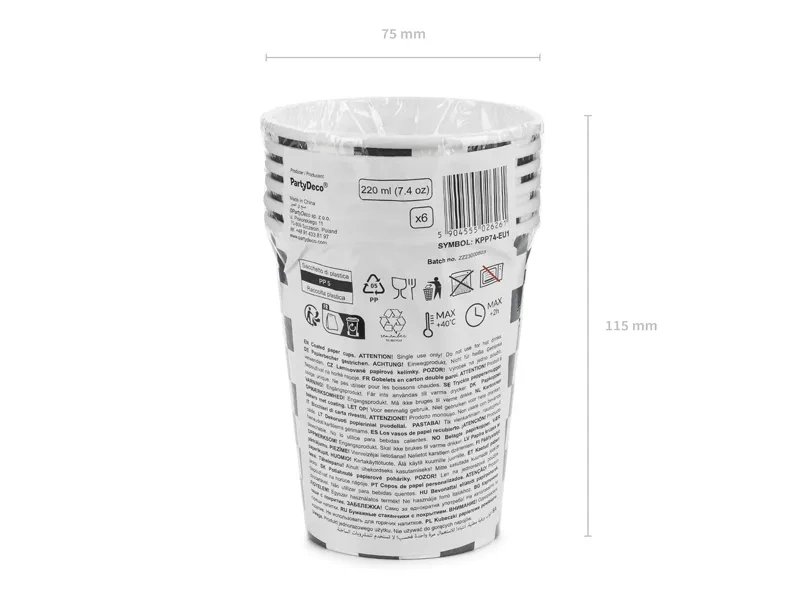 Kubki papierowe Szachownica Wyścigi 220 ml, 6 szt.