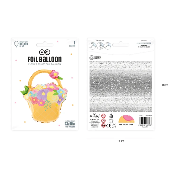 Przedstawiamy nasz uroczy balon foliowy w kształcie koszyka z kwiatami, idealny na różne okazje od urodzin po baby showers i wiele innych. Ten piękny balon dodaje uroku i koloru każdej imprezie, tworząc niezapomnianą atmosferę.