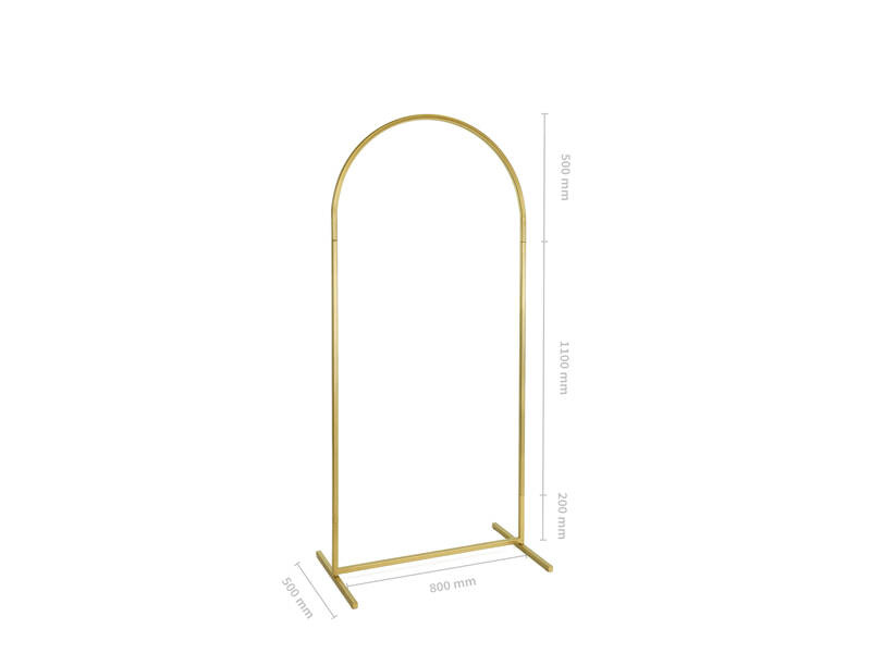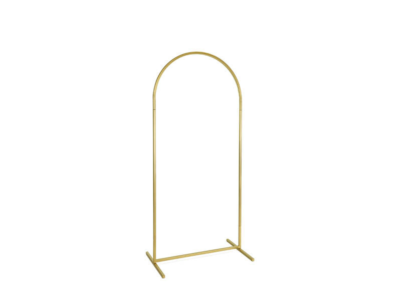 Stojak na tło w kształcie łuku, wykonany ze stali w kolorze złotym.