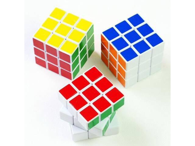 Popularna zabawka logiczna. Zabawa kostką polega na takim ułożeniu kwadratów, aby każda ścianka była w 1 kolorze.