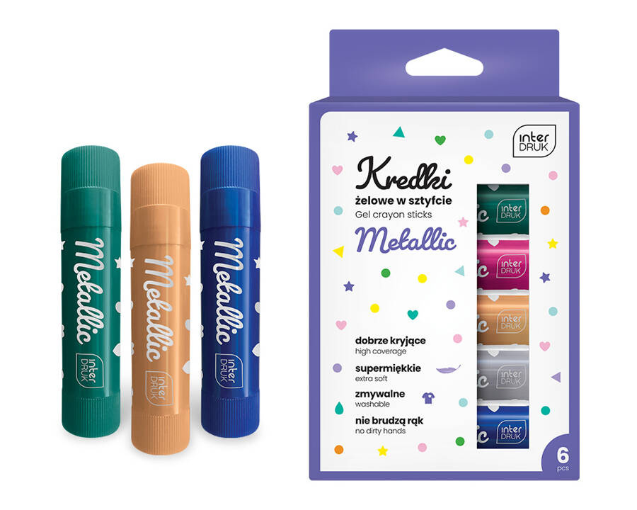 Farby plakatowe w formie wykręcanej kredki. Super miękkie i dobrze kryjące z metalicznym połyskiem. Są gotowe do użycia, nie wymagają wody ani pędzla.