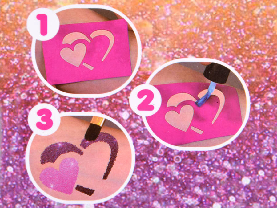 Szablony i klej raczej do zabawy w tatuaże, ale brokat SUPER - dużo kolorów, bardzo intensywne i mimo małych pojemników bardzo wydajny.