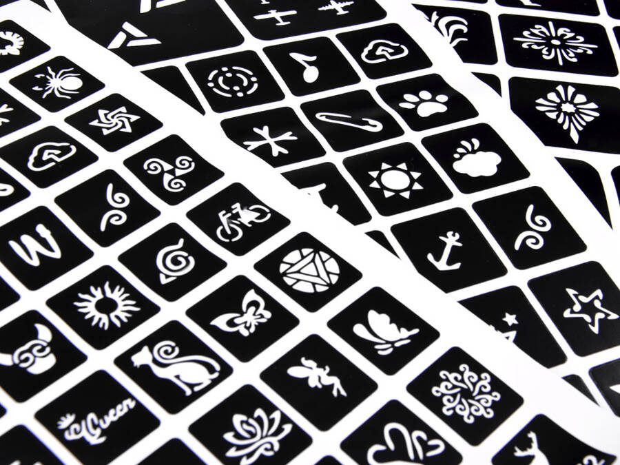 • wybierz szablon z arkusza i przyklej go na umytą i oczyszczoną skórę