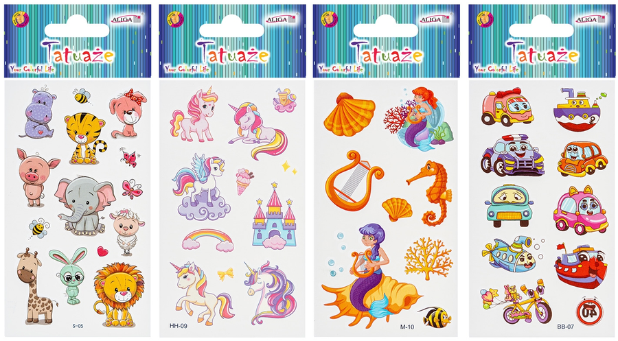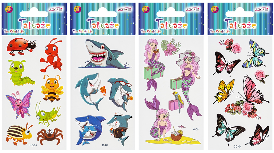 Tatuaże zmywalne wodne dziecięce mix wzorów